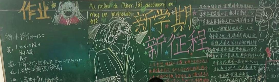 高一(2)班的黑板報上承載著同學們對新學期的美化憧憬與渴望!