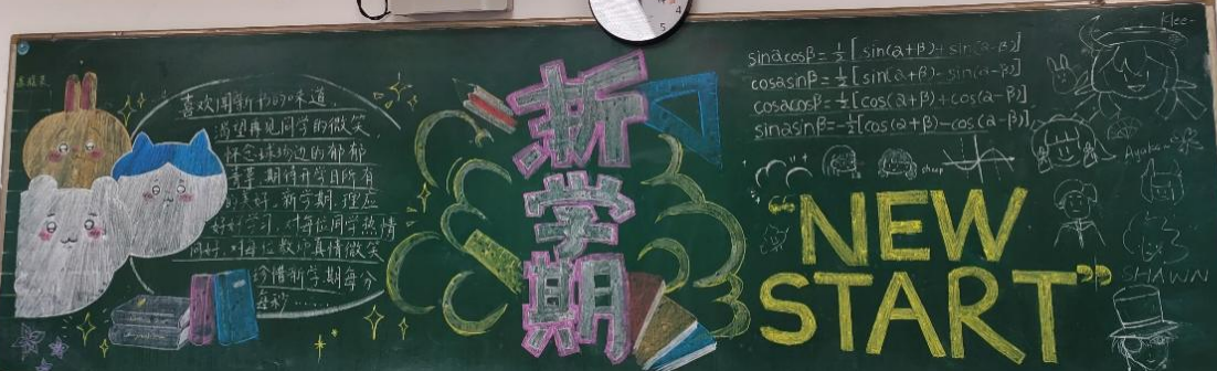 高一(8)班的黑板上不僅有一首歡迎新學期的清新小詩,還有數(shù)學的“積化和差”公式?磥硗瑢W們是下決心要學好數(shù)學了!好期待哦!