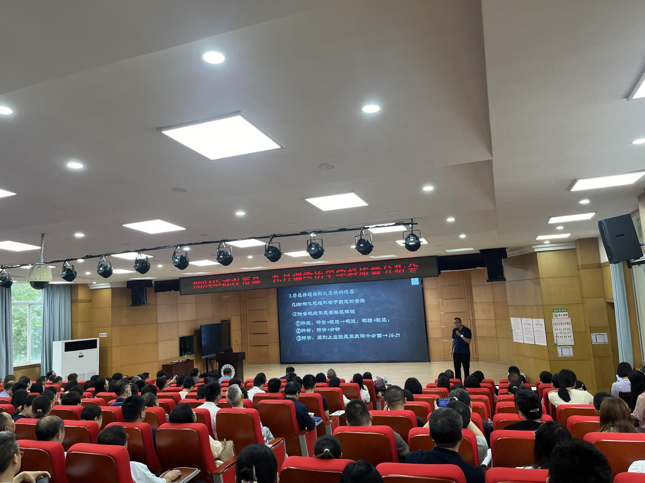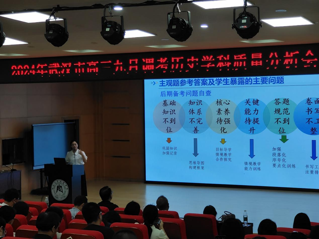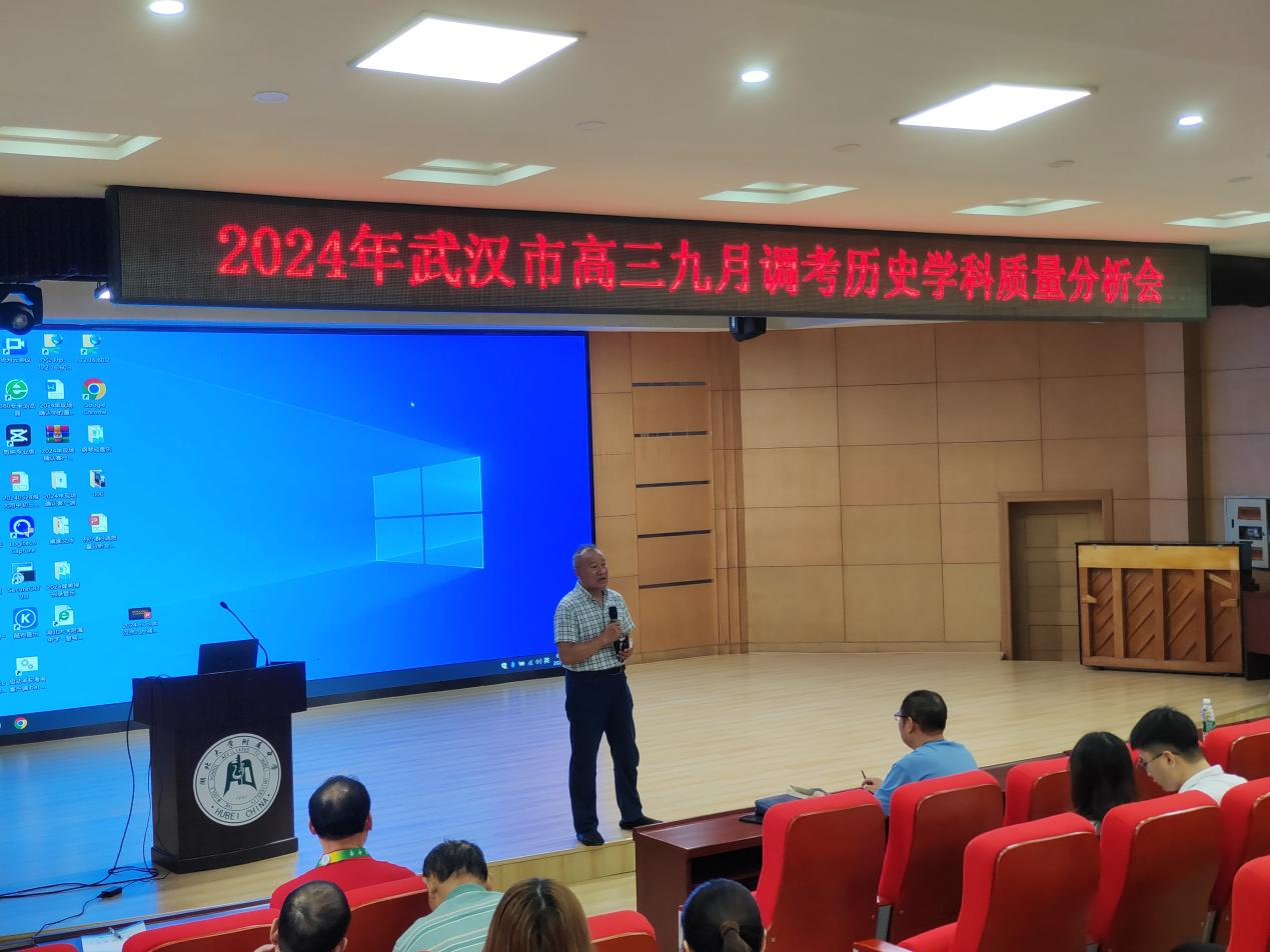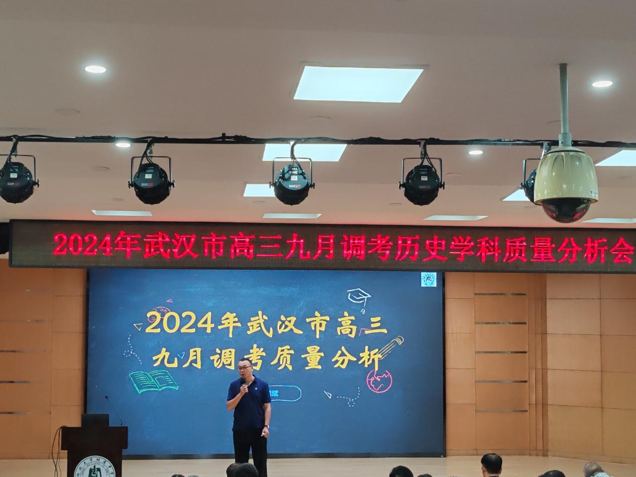 2024年9月13日上午9點,武漢市高三九月調(diào)考歷史學(xué)科質(zhì)量分析會在我校報告廳召開,來自全市各區(qū)的教研員及各校高三歷史教師共二百多人與會,會議由市高中歷史教研員童綏寶老師主持。
