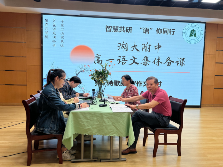 為進(jìn)一步促進(jìn)教師間的交流與合作,充分發(fā)揮集體智慧,真正實(shí)現(xiàn)“以教促研”、“以研興教”,湖大附中自本學(xué)期開(kāi)始全面展開(kāi)各教研組的集備展示活動(dòng)。10月17日周四下午第九節(jié)課,湖大附中語(yǔ)文教研組高一備課組在二樓報(bào)告廳進(jìn)行了名為“智慧共研,‘語(yǔ)’你同行”的集體備課展示活動(dòng),拉開(kāi)了集備展示活動(dòng)的序幕。高一年級(jí)語(yǔ)文備課組長(zhǎng)郭文老師主持了本次集備展示活動(dòng),全體教師到場(chǎng)觀摩學(xué)習(xí)。