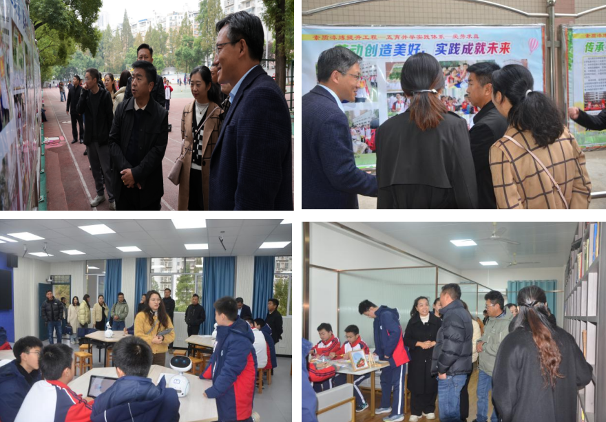 考察團(tuán)在學(xué)校領(lǐng)導(dǎo)班子的陪同下參觀了學(xué)校的文化長(zhǎng)廊、琴園書(shū)吧、錄播教室、美術(shù)教室、物理實(shí)驗(yàn)室、化學(xué)實(shí)驗(yàn)室等多功能教室?疾靾F(tuán)還深入到我校頗具特色的篆刻、衍紙、龍獅、AI等X課程的現(xiàn)場(chǎng),感受中華優(yōu)秀傳統(tǒng)文化和人工智能在課堂中的魅力。