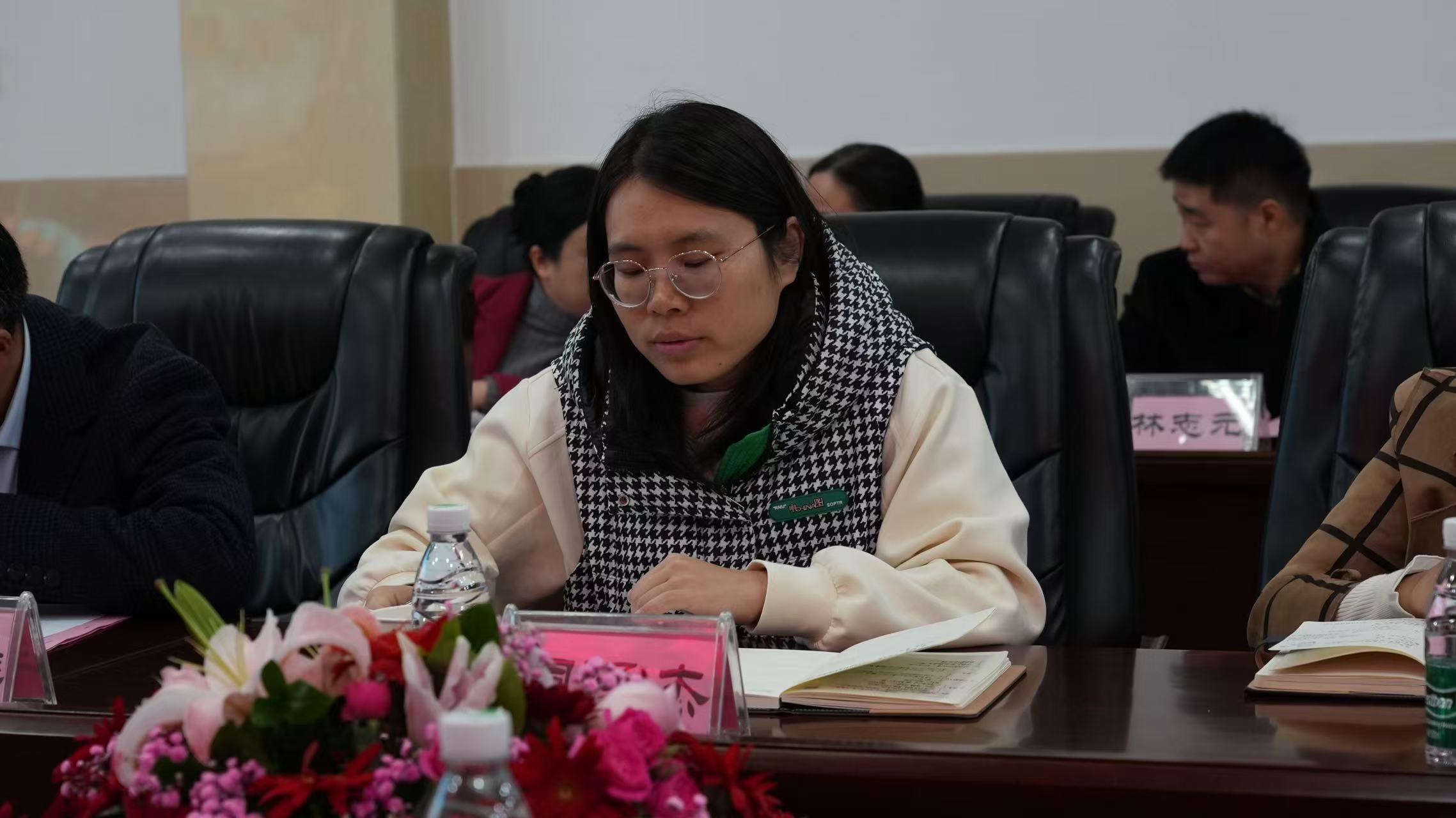 參觀結(jié)束后,考察團(tuán)一行落座二樓會(huì)議室舉行座談交流。武昌區(qū)教育局中教科周澤杰向乃東區(qū)教育考察團(tuán)分享了武昌區(qū)教學(xué)改革、教研體建設(shè)、特色發(fā)展與備考行動(dòng)等方面的實(shí)踐經(jīng)驗(yàn)。