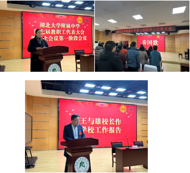 會(huì)議的第一階段由第七屆教代會(huì)秘書長(zhǎng)丁美芳主持。大會(huì)在莊嚴(yán)雄壯的國(guó)歌聲中拉開了帷幕。會(huì)上,潘琦宣讀湖北大學(xué)關(guān)于同意附中召開教代會(huì)的批復(fù)。校長(zhǎng)王與雄作2024年度學(xué)校工作報(bào)告。報(bào)告從教學(xué)質(zhì)量提升、課程育人強(qiáng)化、教育評(píng)價(jià)改進(jìn)、校園文化提升、智慧校園建設(shè)推進(jìn)、教師隊(duì)伍結(jié)構(gòu)優(yōu)化、增員狀況改善、國(guó)有資產(chǎn)管理清理、財(cái)政定額補(bǔ)助增加九個(gè)方面對(duì)2025年學(xué)校重點(diǎn)工作進(jìn)行部署和安排。報(bào)告強(qiáng)調(diào),2025年是“十四五”規(guī)劃的收官之年,堅(jiān)持以黨的二十大精神為指引,貫徹黨的教育方針,提高辦學(xué)水平。同時(shí),全面加強(qiáng)黨的領(lǐng)導(dǎo)和全面從嚴(yán)治黨,筑牢思想根基,規(guī)范組織生活,開展學(xué)習(xí)教育,增強(qiáng)紀(jì)律,加強(qiáng)黨風(fēng)廉政建設(shè)。此外,推進(jìn)民主管理和工會(huì)工作,弘揚(yáng)教育家精神,強(qiáng)化師德師風(fēng)建設(shè),加強(qiáng)教學(xué)管理和科研興校策略,凝心聚力共同開創(chuàng)學(xué)校教育教學(xué)工作的新局面。