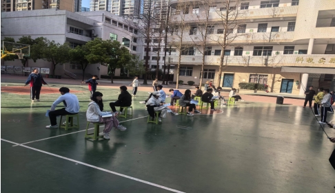 考試項目涵蓋了中考體育的必測內(nèi)容,包括50米跑、籃球運(yùn)球繞桿、一分鐘跳繩、坐位體前屈等,這些項目不僅考驗著學(xué)生們的速度、力量、耐力和靈活性,更是對他們?nèi)粘S?xùn)練成果的一次全面檢驗。為了確?荚嚨墓焦蛯I(yè)性,體育組特別邀請了湖北大學(xué)體育系的實習(xí)生與校內(nèi)資深體育教師共同組建了一支專業(yè)裁判團(tuán),他們嚴(yán)格遵循中考標(biāo)準(zhǔn),對每一位學(xué)生的測試進(jìn)行精準(zhǔn)評判。