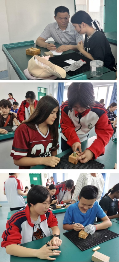 在雕刻過程中,雙方學生相互交流、相互幫助。湖大附中的同學們用不太流利的英語耐心地指導著,澳大利亞學生們則認真專注地學習著,每一次刀尖與石料的觸碰都仿佛是在書寫著中澳友誼的新篇章。經過一番努力,一個個充滿創(chuàng)意與心意的印章逐漸成型,有形態(tài)各異的仙鶴,有包含祝愿的吉語,每一枚印章都承載著兩國學生的情感與夢想。