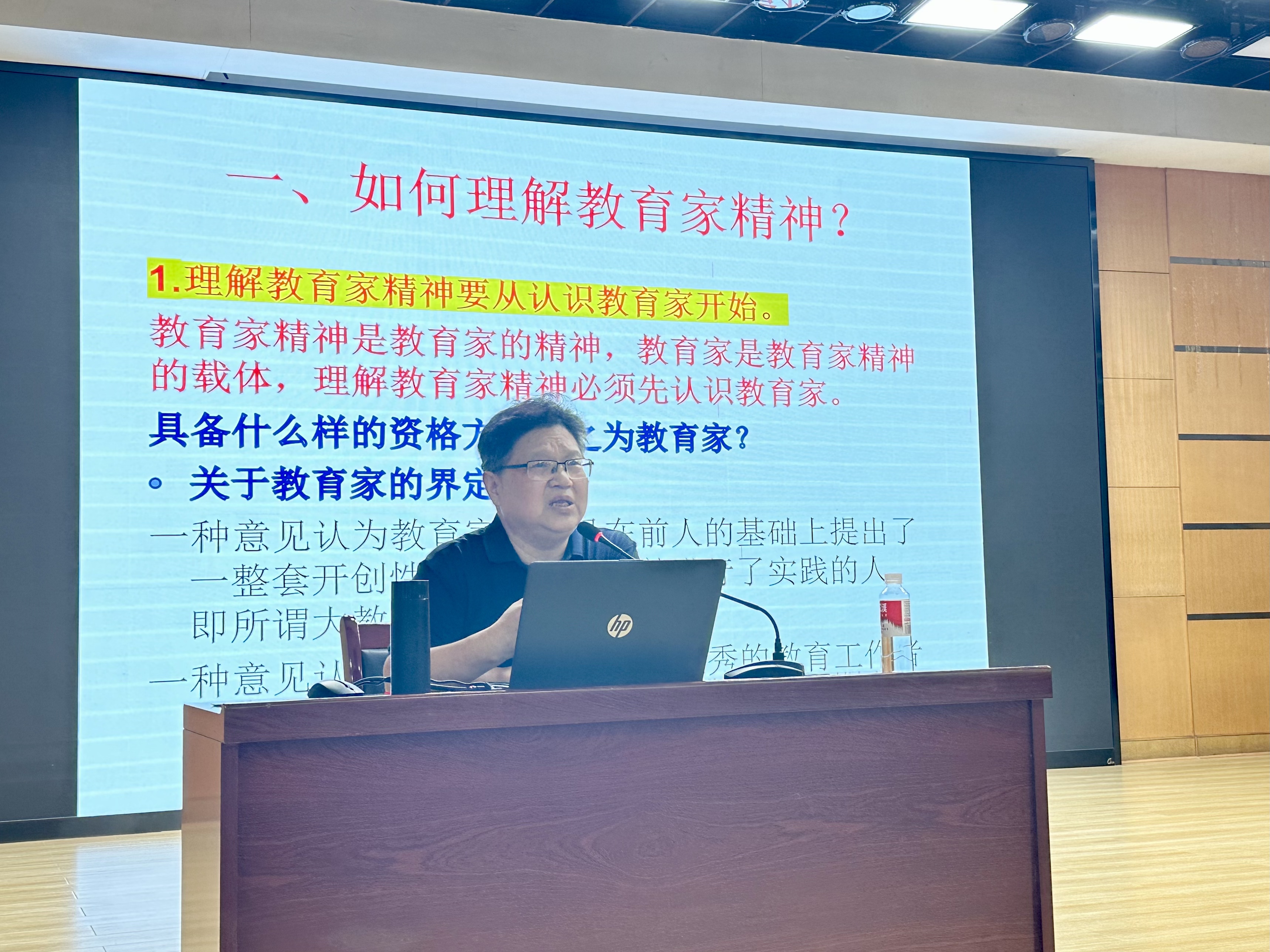 程斯輝教授以“以積極的生命狀態(tài)踐行教育家精神”為主題,作了一場深刻而生動的專題報告。他從如何理解教育家精神入手,系統(tǒng)闡述了教育家精神的內(nèi)涵。程教授強調(diào),教育家精神是教師群體的共同價值追求,是推進教育事業(yè)發(fā)展的內(nèi)生力量和精神支柱。他結(jié)合習(xí)近平總書記關(guān)于教育的重要論述,分析了弘揚教育家精神的必要性:一是精神具有巨大力量,能支撐教師克服職業(yè)困難;二是教育事業(yè)需要精神支柱,以支撐育人使命;三是教育家及其精神在思想引領(lǐng)、改革創(chuàng)新、實踐示范、社會輻射和精神激勵等方面具有不可替代的作用。