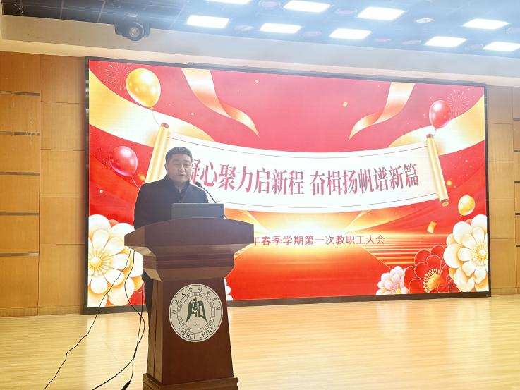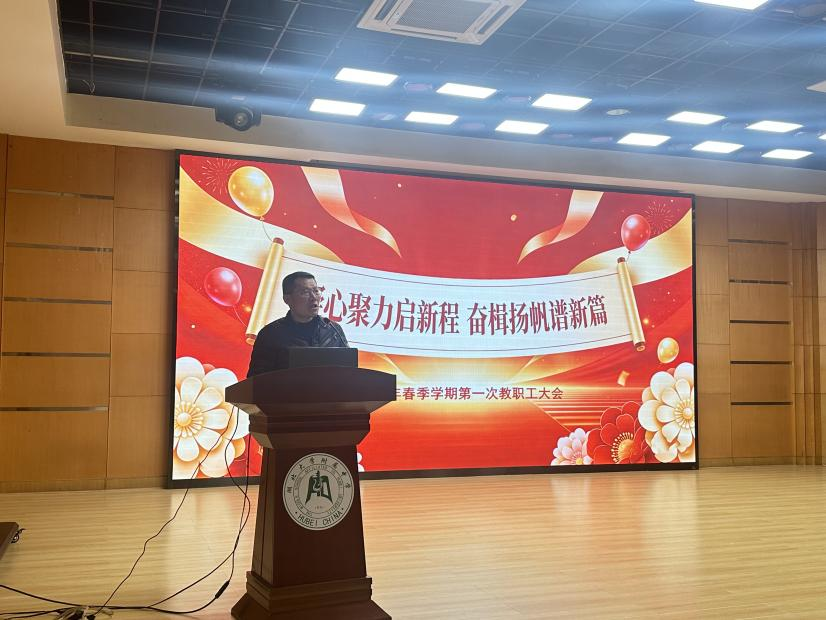 律回春暉漸,萬(wàn)象始更新。2月27日,我校召開2026年春季學(xué)期第一次全體教職工大會(huì),旨在返崗收心、凝心聚力,全面部署新學(xué)期各項(xiàng)工作,動(dòng)員全體教職工以昂揚(yáng)斗志開啟新學(xué)期征程。校領(lǐng)導(dǎo)班子成員及全體教職工參加會(huì)議。