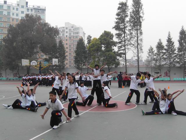 初二年級全體師生積極參加校園文化節(jié)活動,在健美操預(yù)賽中初二(2)班獲的第一名的佳績.