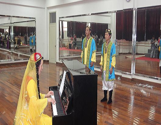 三位參賽教師在團(tuán)體比賽中,以一曲小合唱《阿拉木汗》贏得了評(píng)委的贊譽(yù)。在當(dāng)天下午進(jìn)行的個(gè)人項(xiàng)目比賽中,他們分別參加了合唱指揮、運(yùn)動(dòng)標(biāo)志設(shè)計(jì)、體操和的展示,并且都有出色的表現(xiàn)。