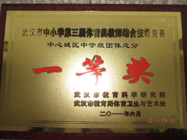2011年6月,我校體衛(wèi)藝處雷小東、張振杰、劉志祥三位老師參加了在開發(fā)區(qū)一中舉行的“武漢市第三屆體音美教師綜合技能競賽”。經(jīng)過賽前精心的準(zhǔn)備和賽中激烈的角逐,最后在中學(xué)組70余代表隊中脫穎而出,榮獲了團體一等獎第五名獎的好成績。