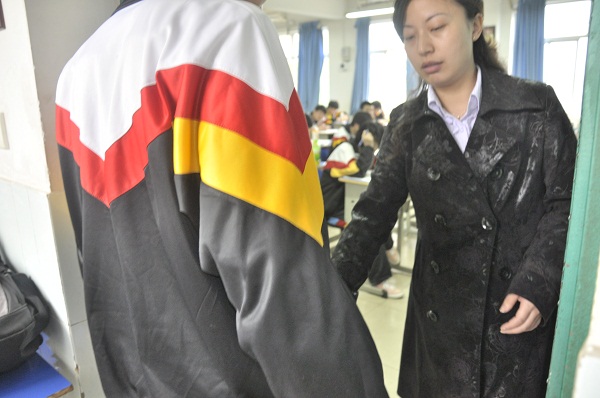在屏蔽儀(墻面右上角)幫助下教師正在監(jiān)考