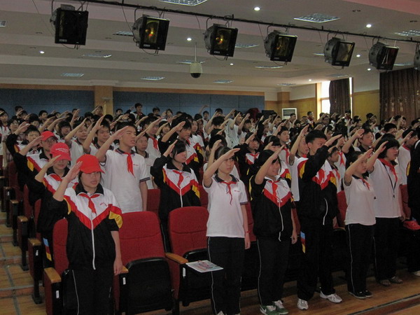 下午2點(diǎn),少先隊(duì)退隊(duì)儀式暨新團(tuán)員入團(tuán)儀式在二樓報(bào)告廳舉行。校黨總支書記何鳳桃、學(xué)工處主任胡勝民,學(xué)工處副主任曾國斌,校團(tuán)委書記王宇,初一年級主任伍漢等領(lǐng)導(dǎo)出席了儀式。