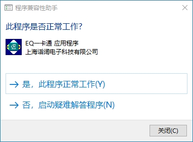 點擊【是,此程序正常工作】,每次關(guān)閉EQ一卡通軟件都會彈出這個提示,煩人。